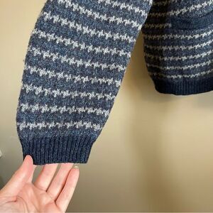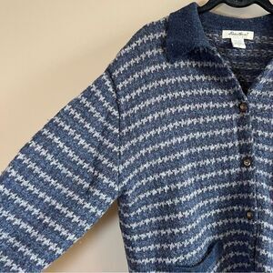 ✨ Eddie Bauer Women’s 100% Wool Blue Gray Striped Cardigan Large
