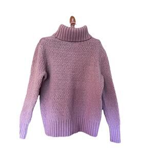 Eddie Bauer Women’s 100% Wool Lilac/Lavender Cable Knit Turtleneck Sweater Sz XL