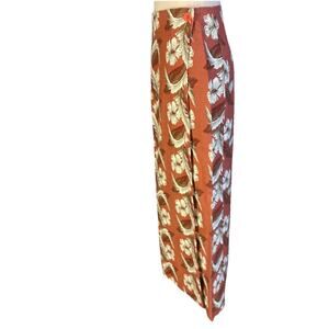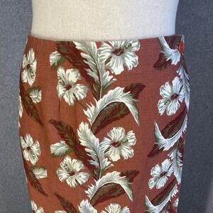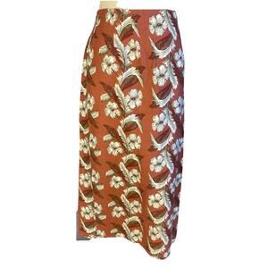 🍂 Eddie Bauer Womens 12 Rust Red Floral Cotton Linen Wrap Skirt 🍂