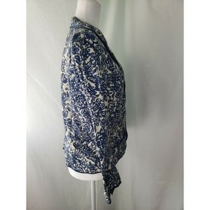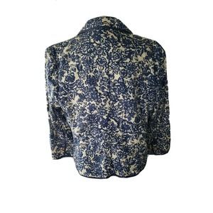 Eddie Bauer Women’s 16 Floral Print Linen Blend Jacket Button Blazer Blue Cream