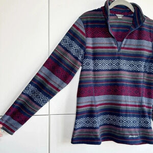 Eddie Bauer Women’s Aztec Fleece 1/4 zip Size Medium Navy Red Warm Cozy Soft