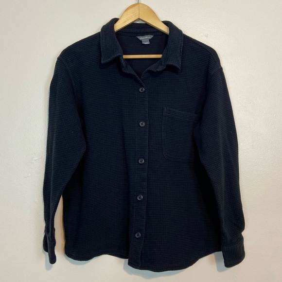 Eddie Bauer Women’s Black Button-Up Waffle Knit Shirt Large