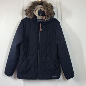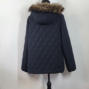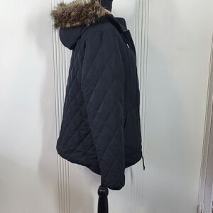 Eddie Bauer women's black lightweight quilted coat / jacket with hood. Hood is not detachable. Very warm lining.