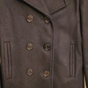 Black wool blend peacoat with beautiful buttons with anchors in them.