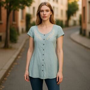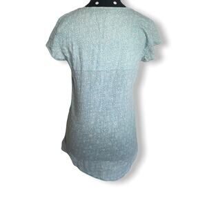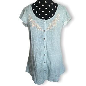 Eddie Bauer Womens Blouse Size Small Blue Floral Print Peasant Gauzy Embroidered