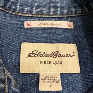 Eddie Bauer Womens Blue Denim Collared Vest Size Small Metal Button Front Cotton.