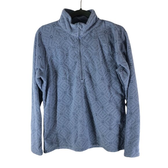 Eddie Bauer Womens Blue Textured 1/4 Zip Pullover Fleece Top Lightweight S