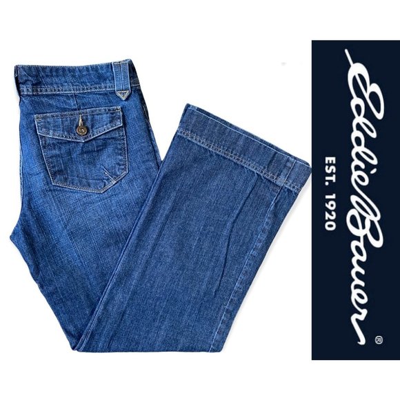 Eddie Bauer Womens Boot Cut Jeans Blue Pockets Dark Wash Mid Rise Denim 6 R