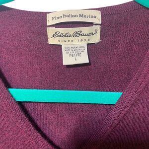 Eddie Bauer Womens Burgundy Merino Wool Button Up Cardigan Preppy LP Cottagecore