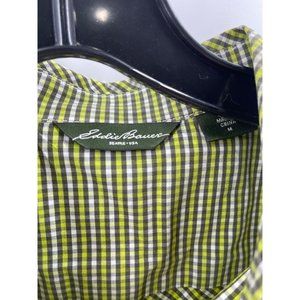 Eddie Bauer Women's Button Down Collar Shirt Green Checker Medium 100% Cotton