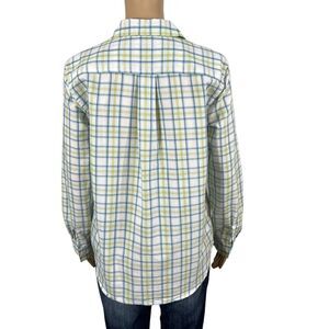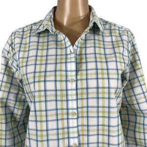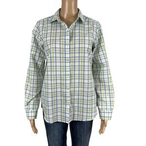 Blue Green Plaid Collared Button Down Shirt Blouse Top Eddie Bauer