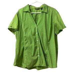 Eddie Bauer Womens Button Down Shirt Size XXL Gree Preppy Hiking Outdoor Casual