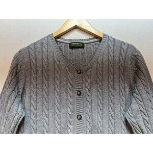 Eddie Bauer Women's Button Front Cardigan Sweater Cable Knit Size L Gray Solid