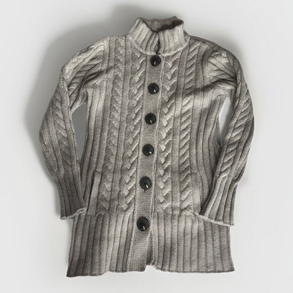 Eddie Bauer Women’s Cable Knit Long Button Cardigan Sweater Beige Alpaca Wool M