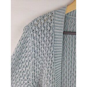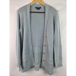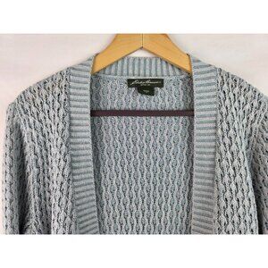 Eddie Bauer Women's Cardigan Sweater Size Medium Blue Chunky Knit Long Sleeve