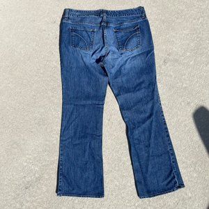 Women's Eddie Bauer brand classic style boot cut jeans. No stains, tears, holes or other condition issues. Inner thigh area is like new with no wear.