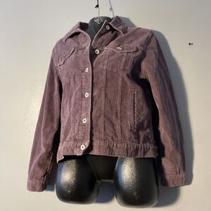 Eddie Bauer Women's Corduroy Jacket Medium Button Down Peace Sign Back Boho