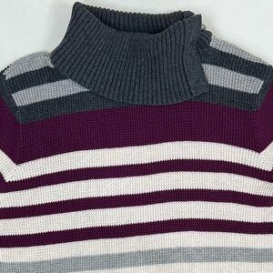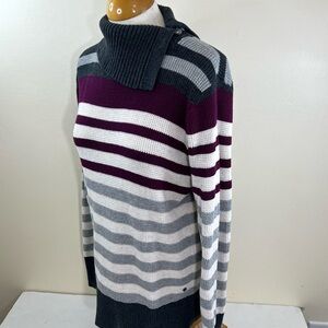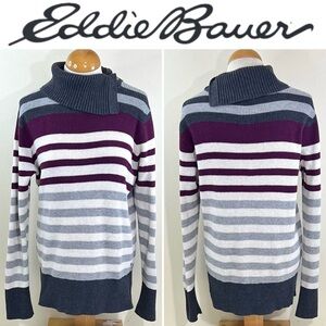Eddie Bauer cowl neck style sweater with multi color stripes. Perfect for casual wear.