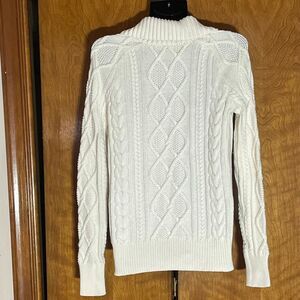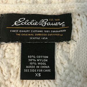 Eddie Bauer Women’s Cream Cable Knit Shawl Neck 90’s Style Wool Blend