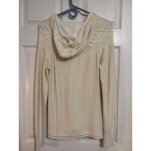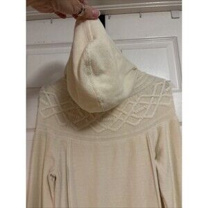 Eddie Bauer Womens Cream Sweater Cable Knit Hooded Rolled Hemline, Size S