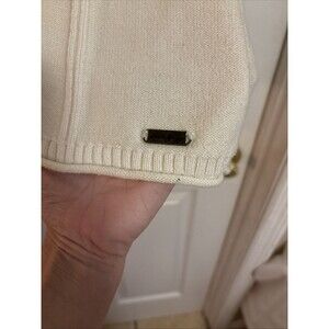 In excellent pre- owned condition. This Eddie Bauer Women's Cream Sweater is a classic and stylish addition to any wardrobe. Made from a comfortable cotton blend material, this sweater features a tight-knit cable knit design with a hooded rolled hemline for added warmth and style. With accents of embroidered details, this sweater embodies a hipster, coastal grandma, and bohemian aesthetic, making it a versatile and fashionable choice for women in size small.