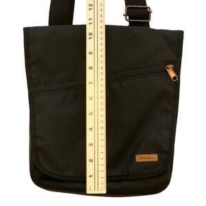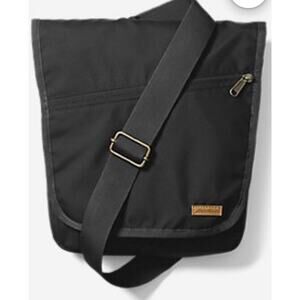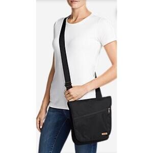 Eddie Bauer Womens Crossbody Bag Black Fabric Purse 6 Sections Adjustable Strap