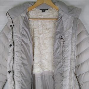 Eddie Bauer Women's Down Parka Puffer Coat Light Gray Alpindown Missing Hood L P