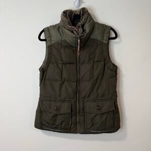 Eddie Bauer Women's Down Retro Vest Yukon Quilted Cargo Green Large Full Zip