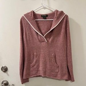 Eddie Bauer Womens Dusty Rose V-Neck Hoodie Pullover Sweater Size Medium
