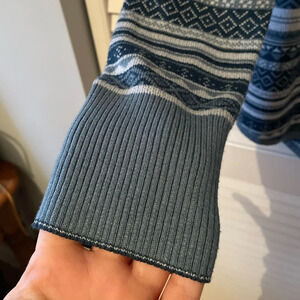 Eddie Bauer Women’s Engage 1/4 Zip Sweater Medium EUC Fair Isle Blue Pullover