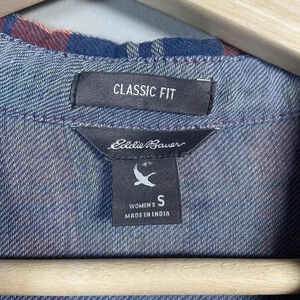 Eddie Bauer Womens Flannel Button-Up Top Pullover Shirt Plaid Size Sz S Classic