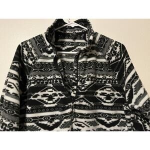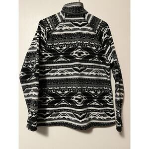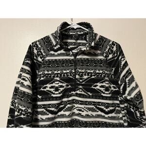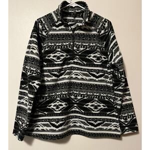 Eddie Bauer Womens Fleece 1/4 Zip Pullover Size XL Black White Aztec Print