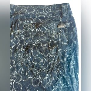Color: Black with white floral/paisley-inspired pattern