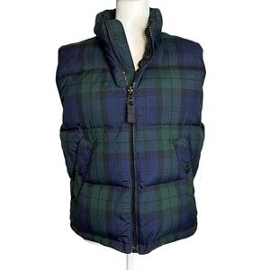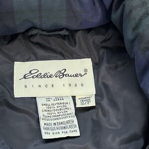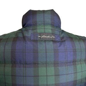 Eddie Bauer Women's Goose Down Vest Sz Small Tartan Plaid Blue Green Water Repellent