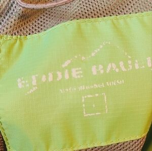 Experience the ultimate level of comfort and protection with this Eddie Bauer green and gray rain jacket. Drawstring cords at neckline.