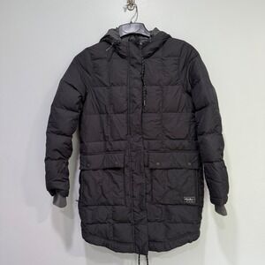 Keywords: Eddie Bauer, womens jacket, down coat, puffer jacket, winter coat, hooded coat, black coat, size S, small, outerwear, quilted jacket, insulated coat, casual jacket, outdoor wear, warm coat