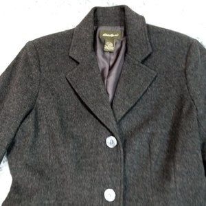 Eddie Bauer Womens Jacket Gray S Wool Rabbit Hair Coat Faux Pockets Blazer