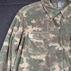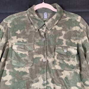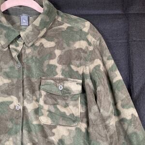 Eddie Bauer Womens Jacket Green Camo Shacket Fleece Pockets Button Up Large