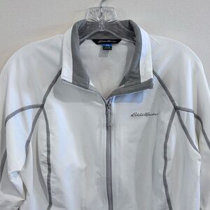 Eddie Bauer Women's Jacket White Gray Trim SZ M Zip Front Closure Front Pockets