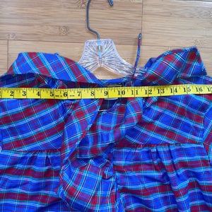 Eddie Bauer Womens L Ruffle Neck 3/4 length Nightgown Red Blue PLAID 90s USA