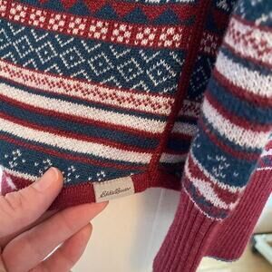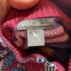 Eddie Bauer Engage Fair Isle Knit Ruby 1/4 Zip Pullover Soft Sweater Size PL