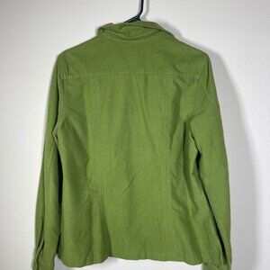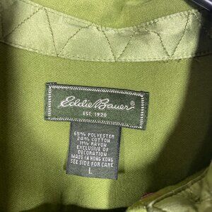 Eddie Bauer Women's LS Green Button-Up Shirt Cozy Fleece Like Material Large!