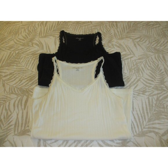 Eddie Bauer Womens Lace Trimmed Ribbed Tank Tops In Black & White Size M