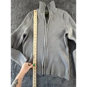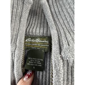 Eddie Bauer Women’s Large Ribbed Full Zip Sweater Gray Pima Cotton Knit Jacket