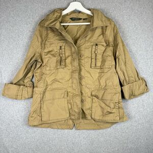 Eddie Bauer Women's Large Tan Button Down Utility Jacket Pockets 100% Cotton