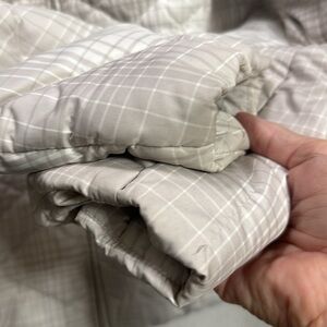 Eddie Bauer Women's Light Gray Quilted Puffer Jacket SZ XLT Tall Flaw plaid down
