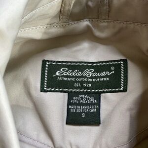 Eddie Bauer Women’s Long Lightweight Khaki Jacket, size small. In excellent used condition. See pictures for measurements and fabric content.