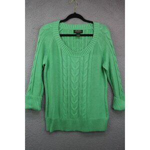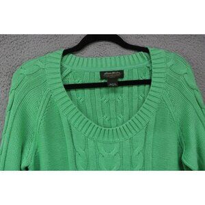 Eddie Bauer Women's Long Sleeve Chunky Cable Knit Fisherman Sweater- XL- Green