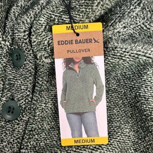 Eddie Bauer Womens M Green Pullover Sweater Fleece Button-Up Collar Medium