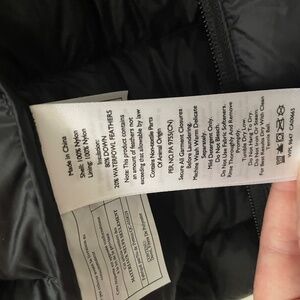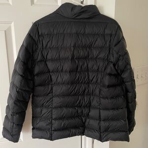 LOVE this jacket, just realized I have three black jackets and probably don’t need all of them! This jacket is extremely light and rolls up very small so a perfect travel companion. Great over a fleece sweater for extra insulation and some water coverage if needed. Only wore a handful of times. No pilling of feathers, rips, tears, etc. Let me know if you have any other questions! :)